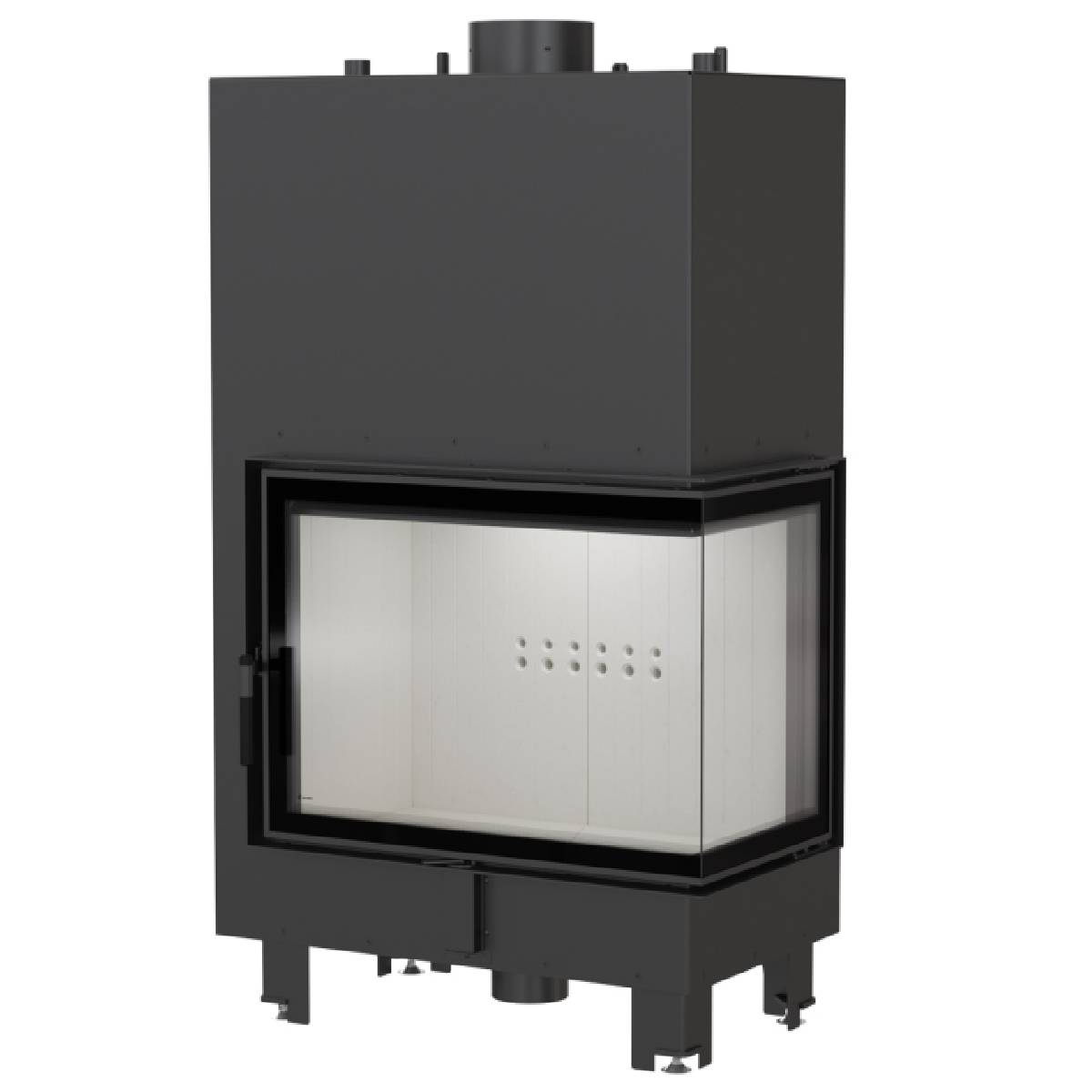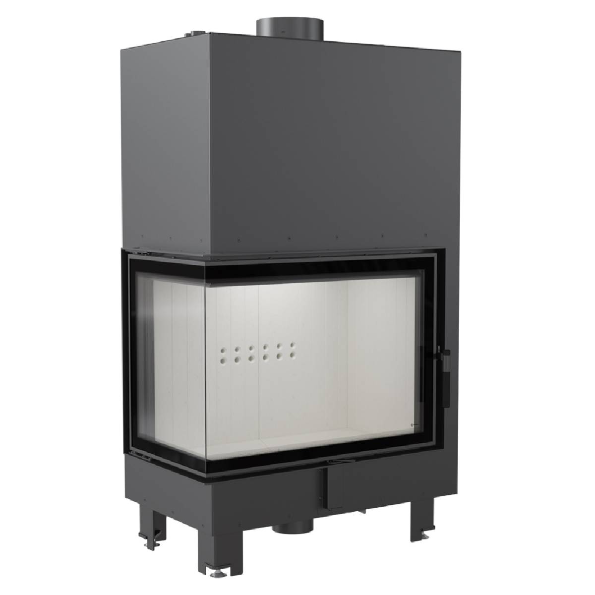 Its corner design (left or right-sided configuration) offers flexibility in installation and a modern aesthetic, while the side-opening door ensures easy operation and maintenance. The interior is lined with white TERMOTEC ceramics, which enhance heat retention, increase combustion temperature, and help keep the glass cleaner.