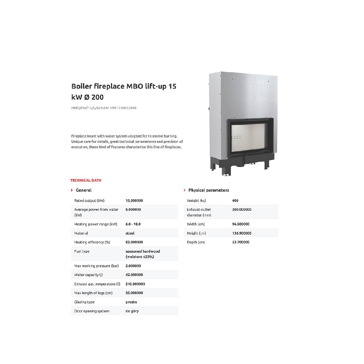 Το KRATKI MBO/PW/15/G/W 15kW Ecodesign (A+) είναι ένα προηγμένο ενεργειακό τζάκι λέβητας νερού, σχεδιασμένο για να καλύπτει αποτελεσματικά τις ανάγκες θέρμανσης κατοικιών από 130 έως 160 τ.μ. Με υψηλή απόδοση και δυνατότητα σύνδεσης με το σύστημα καλοριφέρ, αποτελεί ιδανική λύση για ολοκληρωμένη θέρμανση με χρήση ξύλου.