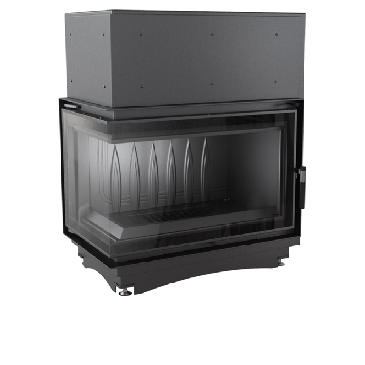 Dizajni këndor me xham në anën e majtë ofron një pamje panoramike të flakës, duke krijuar një atmosferë të ngrohtë dhe elegante në sallon ose në dhomën e ndenjës. Versioni DECO përfshin një kornizë dekorative që përmirëson pamjen estetike të oxhakut dhe e bën atë të përshtatshëm si për ambiente moderne ashtu edhe për ato klasike.